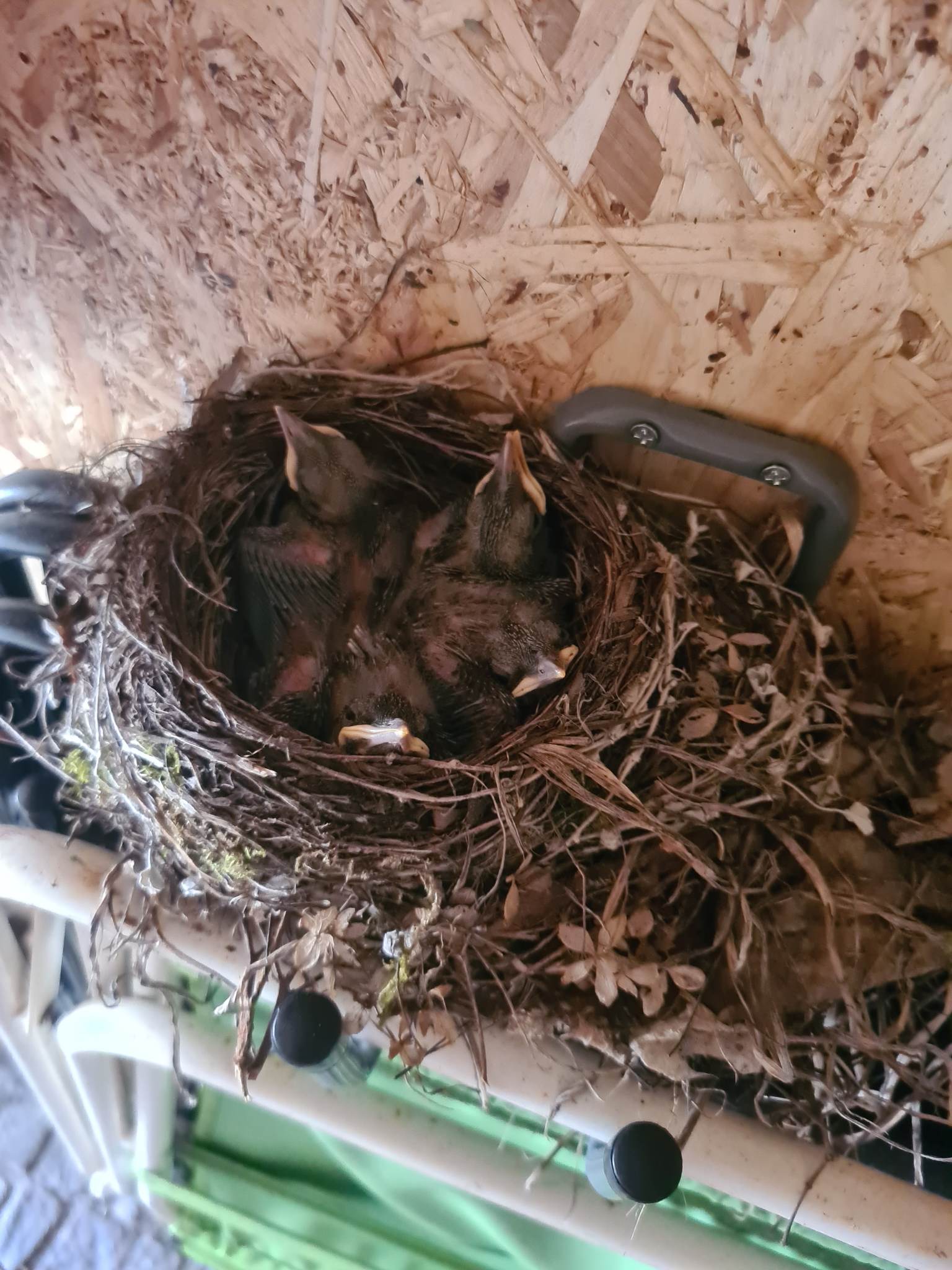 Hos oss bygger koltrasten bon på flera ställen, från inne i kallförrådet och ovanpå växelriktaren, till uteförrådet under tak. Visst är det kul att ha koltrasten hos oss, men i ett fall hindrar den mig från att använda min byggställning där hon byggt sitt bo på och jag vill inte störa henne när hon ruvar på sina ägg. I fallet där hon byggde boet i vårat kallförråd monterade jag en kamera och följde hela processen från ägg till sista unge flög iväg.