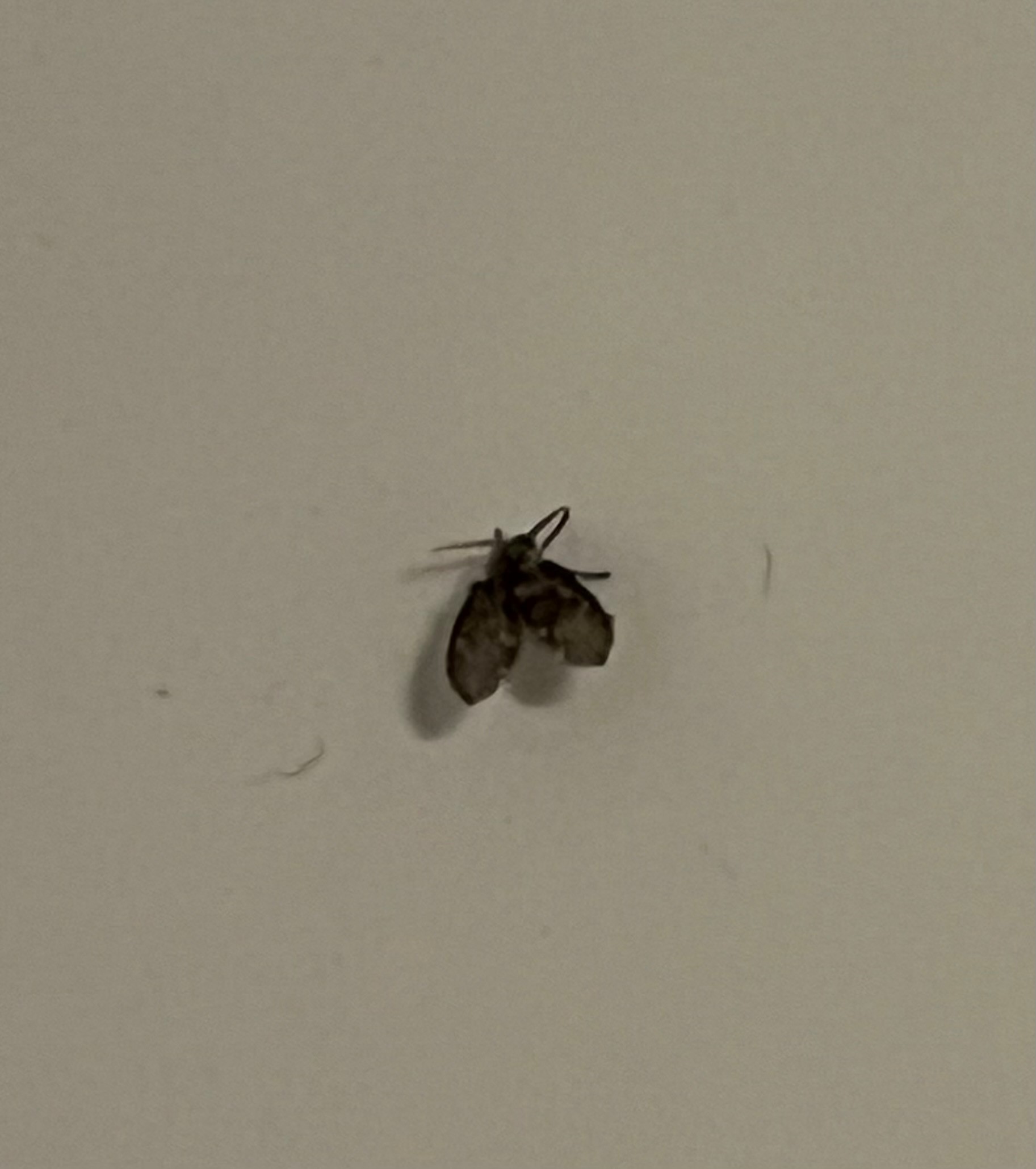 Det är en fjärilsmygga, en av många myggor som inte suger blod. Fjärilsmyggor först till en helt egen familj bland myggorna (Psychodidae). Vi har 63 olika arter fördelade på 23 olika släkten i Sverige. De har det här väldigt typiskt kvadratiska utseendet med korta och runda vingar, och ger just det här lite fjuniga och ”mjuka” intrycket. Ganska ”fjärilslika”, med andra ord. Att det inte är en fluga, trots att den är ganska kort och klumpig jämfört med hur vi tänker oss en mygga, är lättast att se på antennerna. Alla myggor har mer eller mindre långa antenner, med minst 5 segment (”leder”) som alla har liknande form. Flugor, å andra sidan, har bara tre antennsegment, och varje enskilt segment ser olika ut jämfört med de andra.