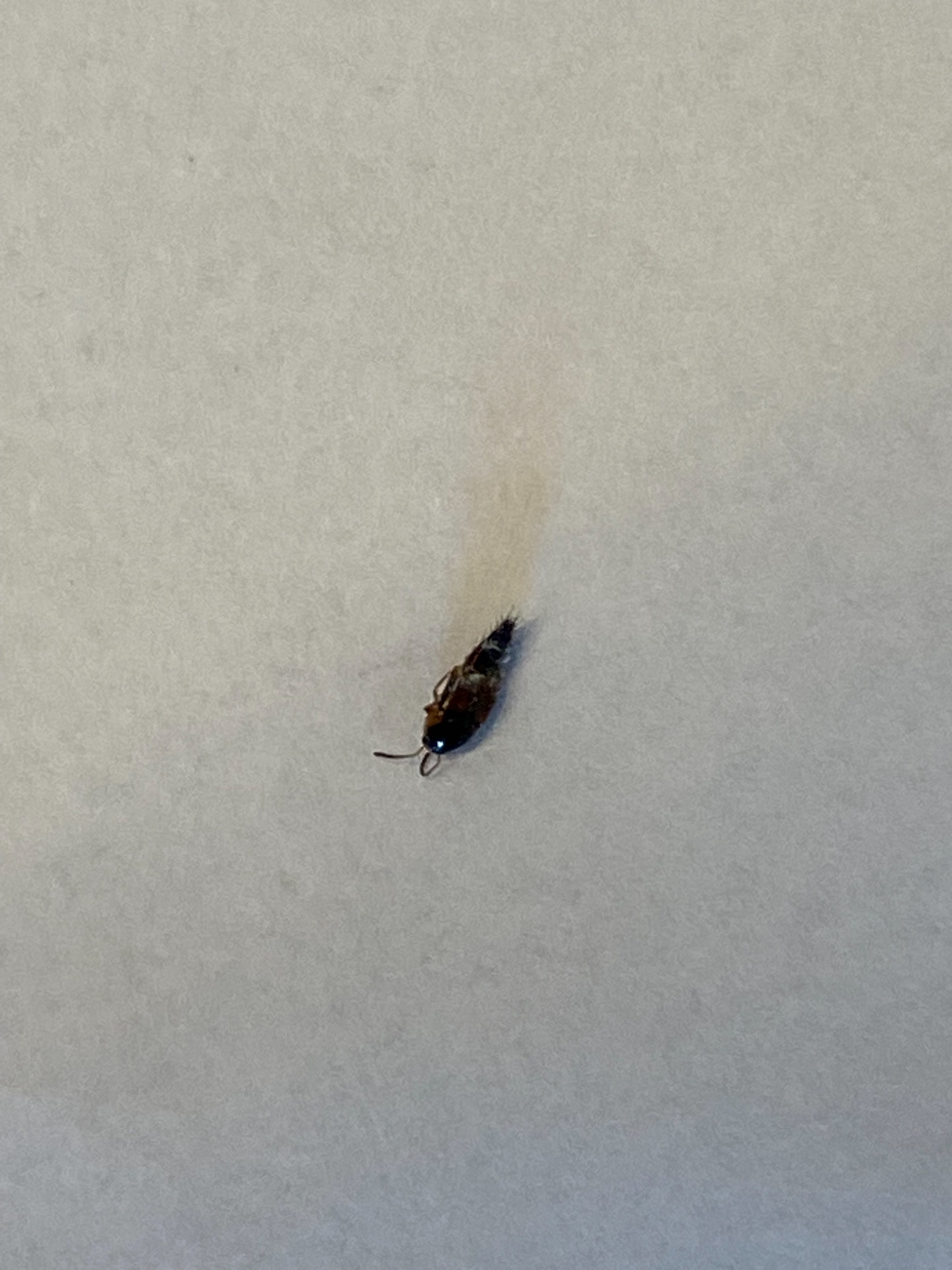 Jag hittade den här insekten död under sängen. Den var 4 till 6 millimeter lång. Vad är det för insekt? Tänkte först att det var en pälsänger eller en vägglus, men inget av alternativen verkar passa. Jag har sett pälsänger i lägenheten tidigare, dock.
