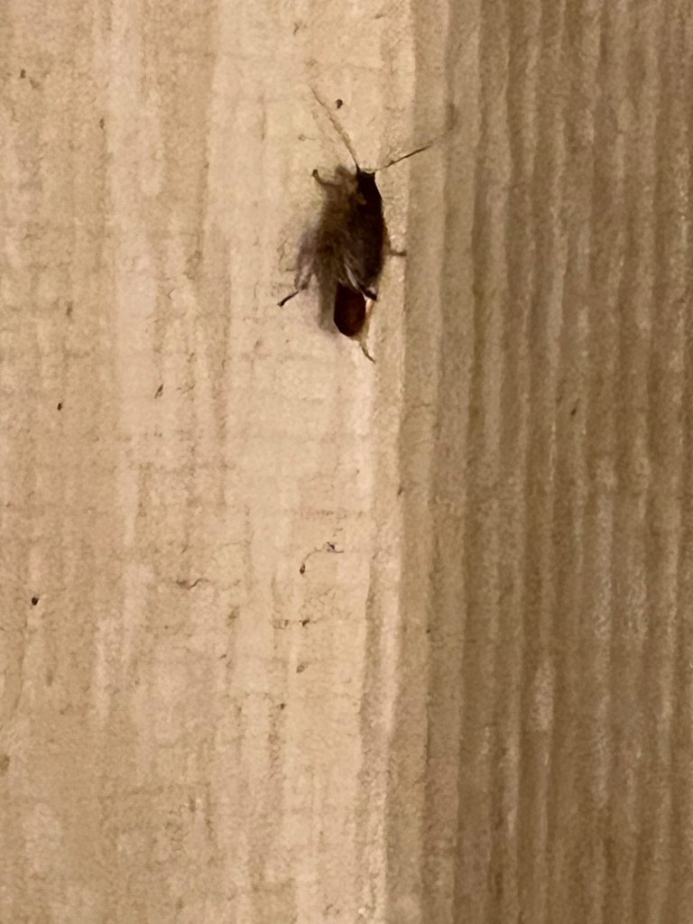 Insekten på bilden hittades i ett badrum i ett hus som vi hyr ut till sommargäster. Huset ligger i Småland med skog och ängar runtomkring, samt en å i närheten. Vilken insekt är det? En skadeinsekt?