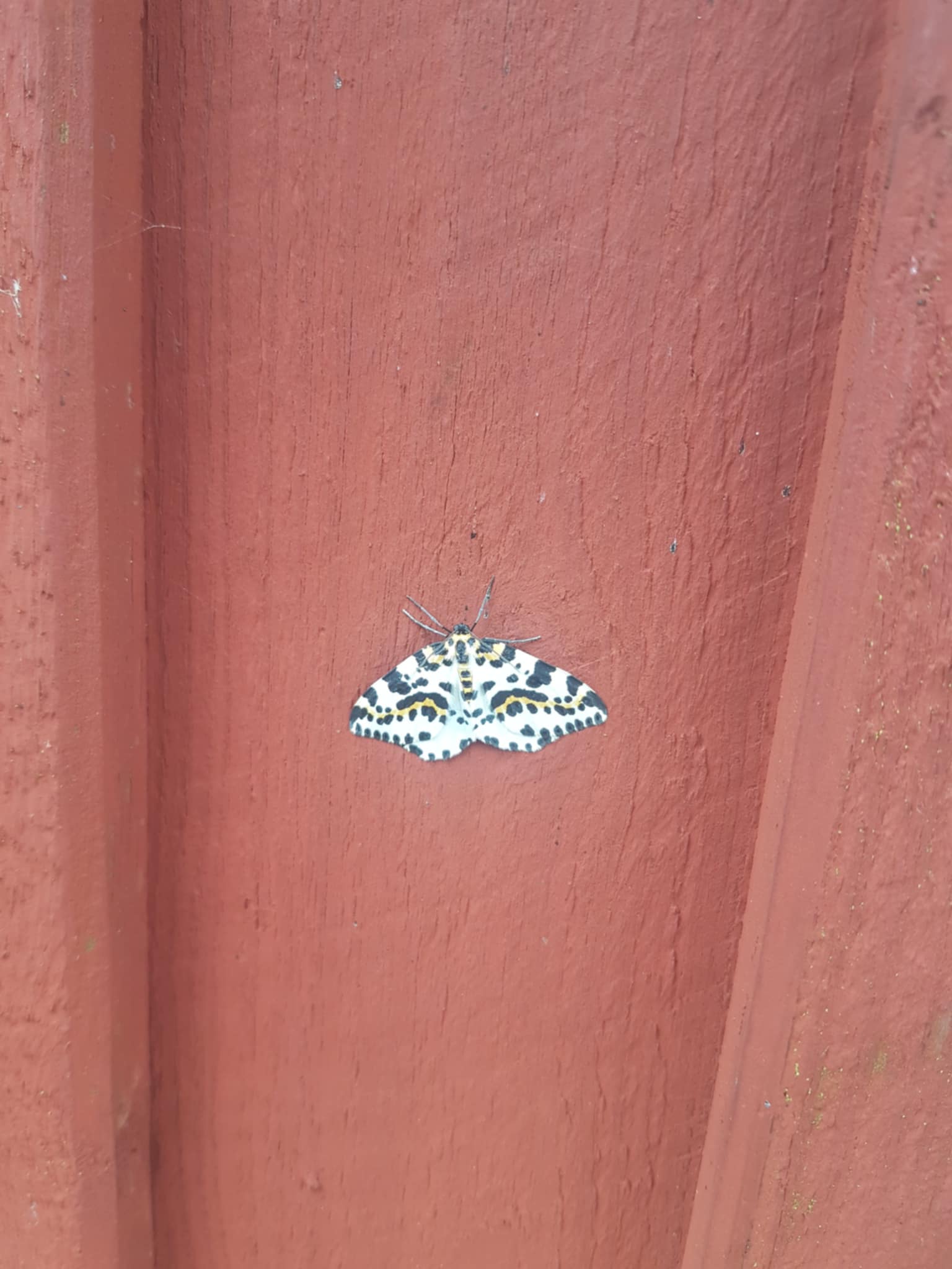 Jag lyckas inte identifiera denna lilla fjäril. Vad är det för något? Den har vit grundfärg med leopardmönster. I somras hade vi (minst) två exemplar vid sommarstugan, vid havet i Oskarshamns kommun i östra Småland.